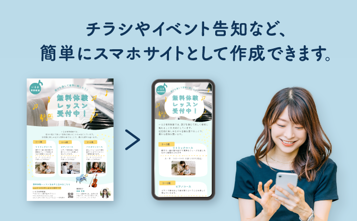 代表的な選択肢としては、無料のホームページ作成サービスや、チラシのデータを活用して自動的にサイト化できるサービスがあります。後者は特に、印刷物とオンラインを連動させたい担当者に適しており、費用を抑えながら統一感ある告知が可能です。印刷通販tegalyの「簡単スマホサイト作成サービス」もその一例で、既存のチラシデータをもとに短時間で公開できるため、限られた予算や時間の中で成果を出したいケースに向いています。