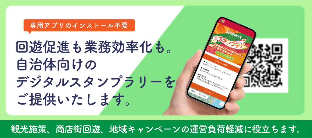 特に回遊促進、来店促進、観光周遊、期間限定イベントでは、QRコード式でも成果を出しやすいです。重要なのは機能数ではなく、参加導線、告知物、景品設計、ポイント配置の整合です。